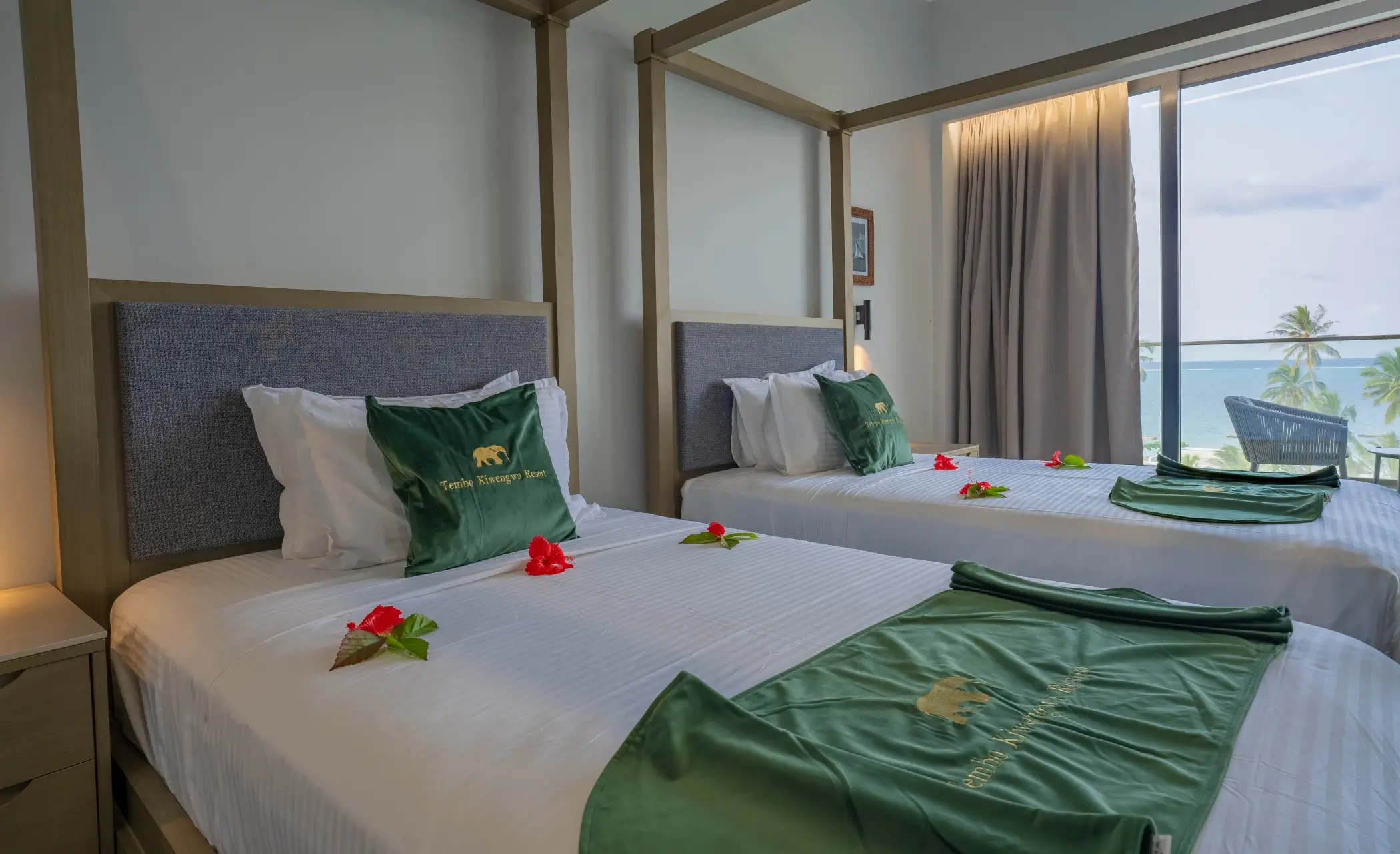 Unwind in comfort with direct access to your private walk-in pool from a spacious patio overlooking the Indian Ocean. This elegant twin room features two plush beds, modern amenities, and a soothing ambiance — ideal for friends or family who wish to share a luxurious seaside retreat without compromising on privacy.